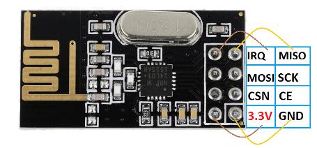 können mehrere Systeme auch parallel betrieben werden. Das Modul verwendet die SPI-Schnittstelle für die Verbindung zum Arduino. Zusätzlich werden noch zwei weitere Pins (CSN & CE) benötigt. Das Modul benötigt keine zusätzliche Stromversorgung, jedoch muss es an den 3,3 Volt Pin angeschlossen werden. Das Modul darf nicht mit 5 Volt betrieben werden! Für die Programmierung benötigt man die NRF24 Library. Diese kann von folgender Seite heruntergeladen werden: NRF24 Library |