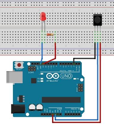 Mit Hilfe eines Infrarotempfängers kann das Arduinoboard die Befehle
